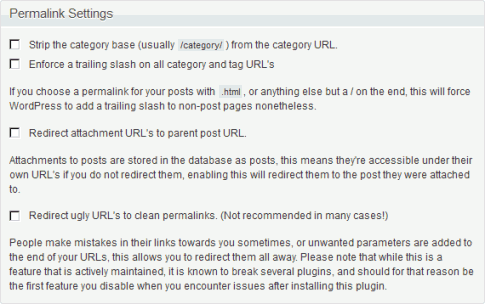 Redirect ugly URL’s to clean permalinks. (Not recommended in many cases!):